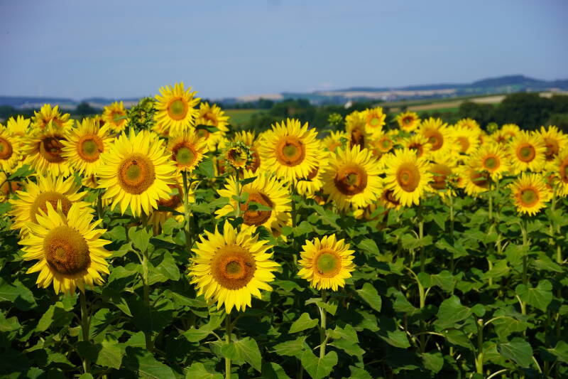 Sonnenblumen sind die Riesen in der Blumenwelt. Sie können ziemlich groß werden. Manche von ihnen erreichen eine Höhe von drei Metern und mehr. Sie sind nicht nur schön, sondern auch nützlich. Aus ihren Samen wird Öl gewonnen, das wir in unseren Lebensmitteln verwenden.