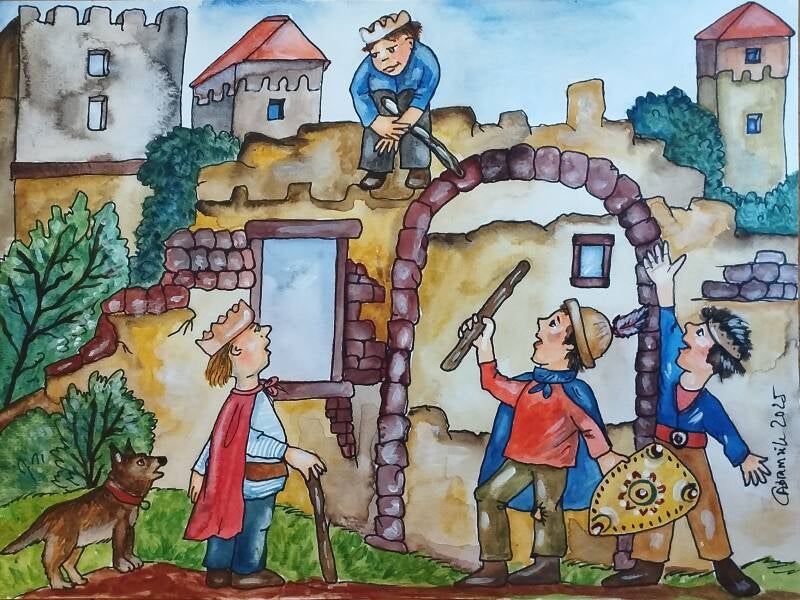 Hagen versenkt den Nibelungenschatz. Illustration von Conny Abramzik